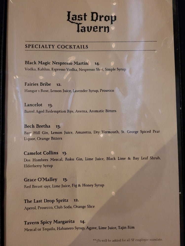 Welcome to Last Drop Tavern, a vibrant addition to San Francisco's New American bar scene, located at 550 Powell St. This casual eatery caters to diverse palates with a menu that includes everything from crispy chicken bites to a superb Last Drop Caesar Salad. Vegetarians will find plenty of options, while late-night revelers can savor delectable dishes like savory Buffalo Wings or indulge in delightful desserts like Chocolate Molten Lava Cake.